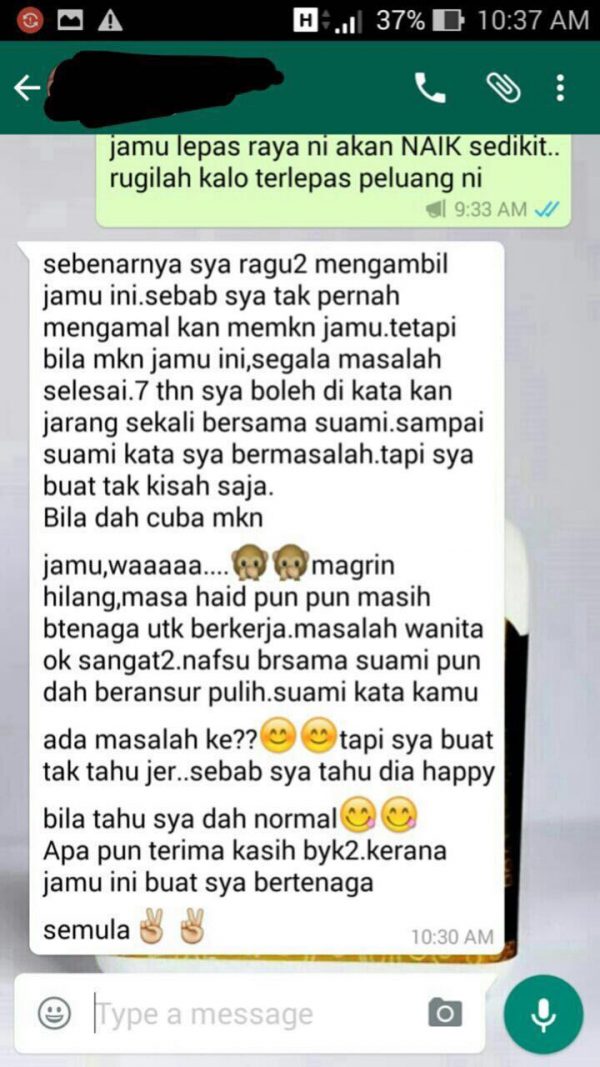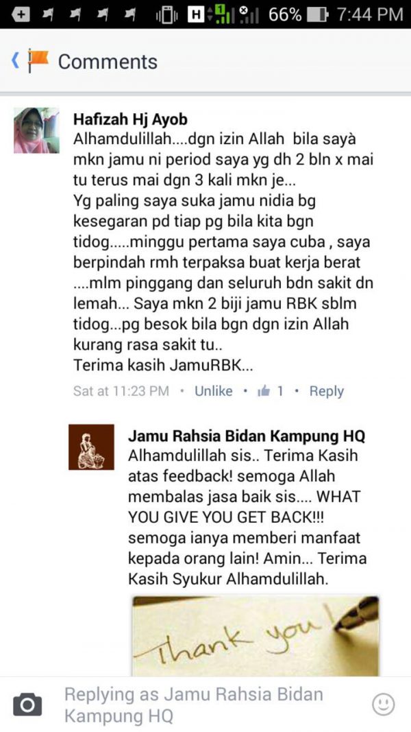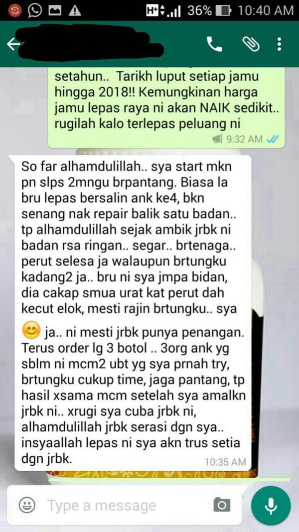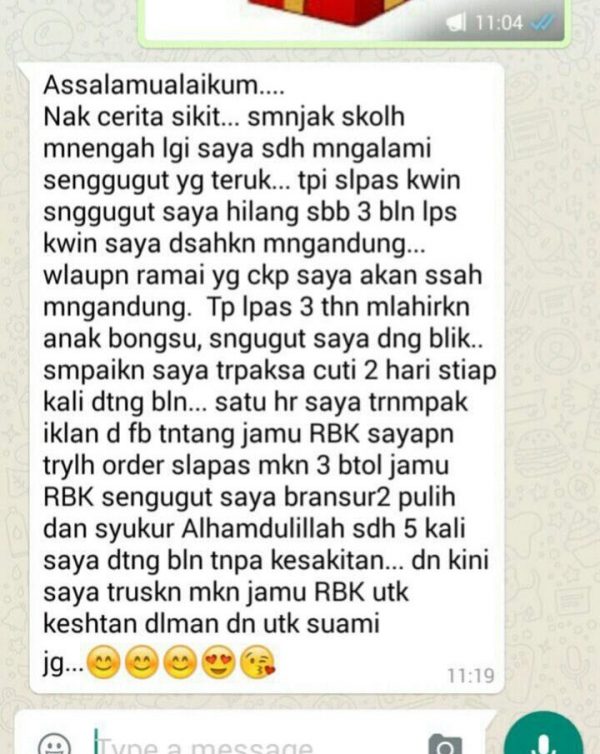 “Alhamdulillah puan diantara pengguna setia Jamu RBK ini… “