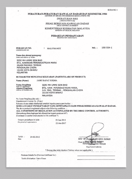 Jamu Rahsia Bidan Kampung ini telah diuji dan diluluskan oleh Kementerian Kesihatan Malaysia (KKM) dan juga telah dia sahkan oleh JAKIM (HALAL) Anda boleh guna Jamu Rahsia Bidan Kampung ini tanpa rasa ragu-ragu!